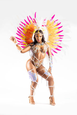 Includes: neck pc, Arm pcs (2), thigh pcs (2), leg pcs (2), jewel tiara or feathered headpiece, waist belt, bra and panty, midline backpack